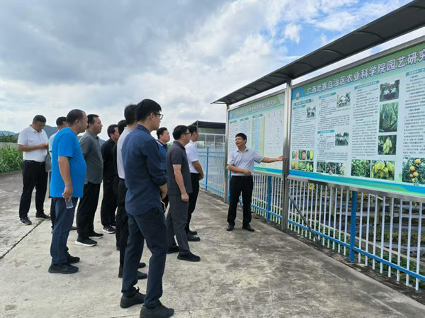 9月17日上午,陕西省果业中心调研组一行10人到广西农业科学院园艺所里建科研基地,开展水果科研创新成果、新品种培育及试验基地建设情况调研,园艺所副所长韦持章陪同。