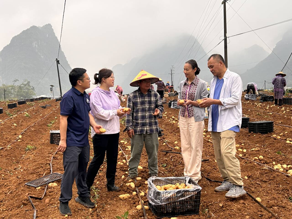 3月25日,王舰一行先后深入武鸣区宁武镇、江州区新和镇马铃薯种植基地,详细了解种植户生产模式、田间管理、种植收益等情况,认真调研品种与栽培管理等产业实际需求,现场开展针对性技术指导,并表示将持续深化两地品种联合示范与技术合作。
