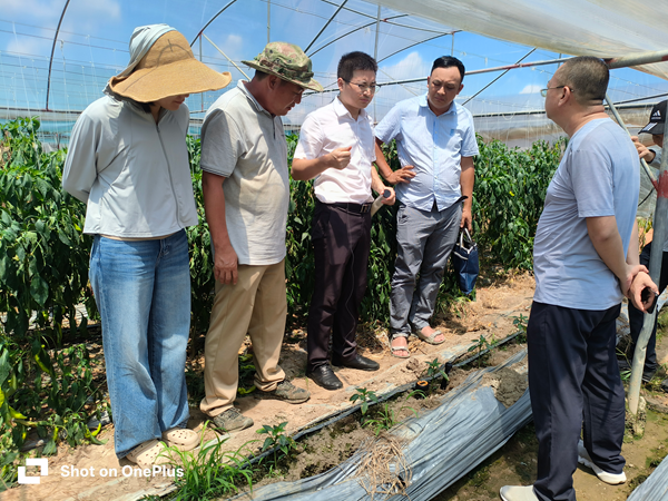9月11-12日,为充分了解北海市银海区大棚辣椒近期遭受热害、青枯病、螨虫等危害情况,中国农业科学院蔬菜花卉研究所蔬菜产业专家团北海工作站负责人、广西蔬菜产业科技先锋队队员、广西乡村科技特派员王日升研究员和吴星副研究员赴北海开展产业科技服务,北海市银海区农业农村局主管部门领导以及多名辣椒种植大户、合作社负责人、收购商等参加。