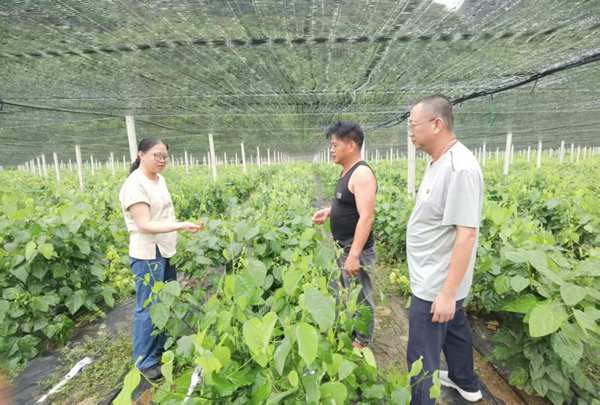 随后,科技人员前往凭祥市夏石镇白马村赤苍藤鲜菜种植基地进行现场调研,并与基地负责人就赤苍藤高压苗繁殖、遮阳网栽培、采摘标准等关键技术进行深入交流探讨。