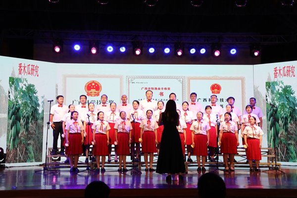 9月29日,广西热作所以“金秋献礼庆华诞,深耕热作绘新篇”为主题,在广西热作所大礼堂举办喜迎广西农科院建院90周年——2025年庆国庆迎中秋文艺晚会。自治区农科院党组副书记、机关党委书记陆宇明等领导莅临指导。广西热作所党委副书记、所长陈赶林,党委副书记、纪委书记梁声侃,党委委员、副所长覃剑峰,党委委员、副所长冯春梅,广西木薯研究所所长李军等所领导出席。中国农业银行股份有限公司南宁民族支行领导、热作所退休领导等嘉宾应邀出席,300余名观众观看演出,共同见证这一喜庆时刻。