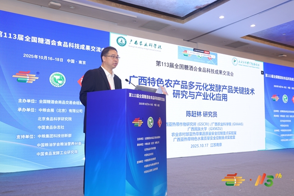 10月16-17日,由北京食品科学研究院、中国食品杂志社和中粮(会展)有限公司联合主办的“第113届全国糖酒会食品科技成果交流会”在南京顺利召开。中国工程院环境与轻纺工程学部副主任陈坚院士等23位专家学者在会上做了精彩学术报告。广西热作所党委副书记、所长陈赶林应邀主持分场报告会并作学术报告。此次活动汇聚了全国顶尖科研院所、高校与企业,搭建起产学研深度融合的桥梁,推动食品科技走向产业前沿。