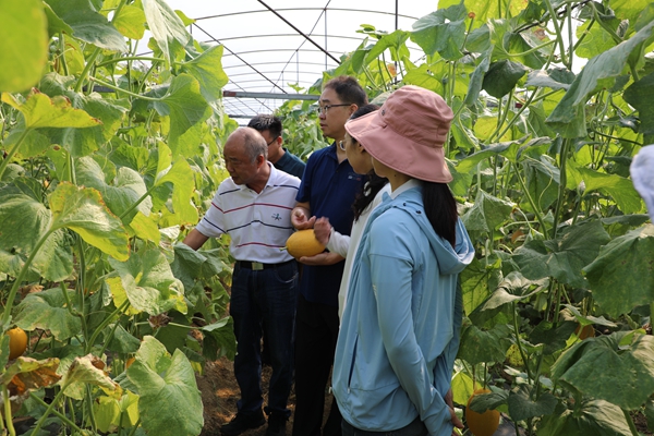 调研期间,科技人员实地察看了西甜瓜新品种的种植表现,详细了解各品种的产量水平、品质特性、经济效益及市场推广前景,重点听取了西甜瓜产业联农带农、助力乡村振兴的工作成效。