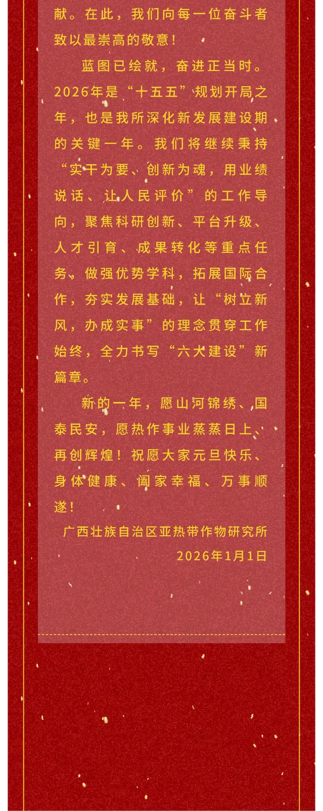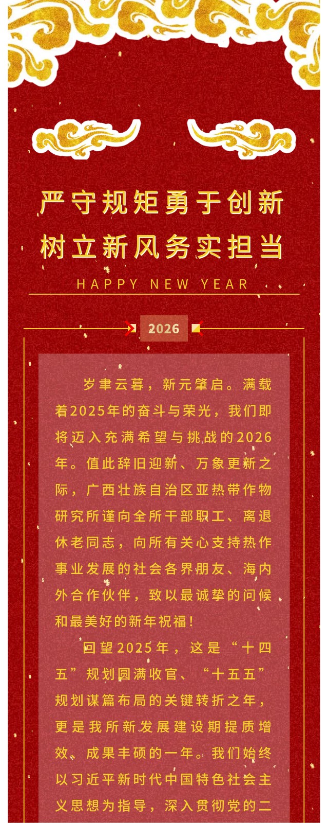 严守规矩勇于创新 树立新风务实担当——广西热作所2026年新年贺词