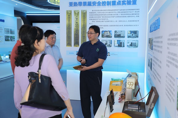 期间,刘文华一行实地参观了广西热作所科技成果展示厅、亚热带果蔬安全控制重点实验室、亚热带果品蔬菜质量检验测试中心及热作所(东盟)亚热带植物园。