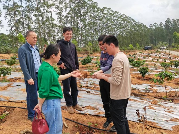 3月23日,广西咖啡研究中心常务副主任宾振钧一行4人赴扶绥县东门林场桉树林下种植基地开展咖啡栽培技术指导服务,为当地咖啡产业和林下经济科学、创新发展提供科技支持。