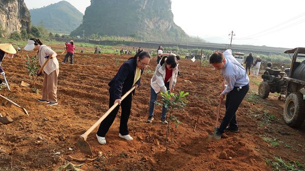 3月12日上午,广西南亚所在所内基地开展春季义务植树活动。所长陈海生,党委书记符志新,副所长王文林、覃振师及100余名干部职工一同参加活动,以实际行动履行生态责任,为南亚所增绿添彩。