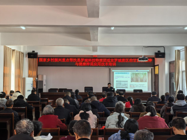 期间,特派团的刘昔辉研究员和吴碧球研究员分别作了“适宜罗城蔗区的甘蔗新品种与健康种苗应用”和“水稻全生育期多病虫一体化绿色防控技术”培训报告,罗城县相关科技人员及农户共70余人参加了培训。
