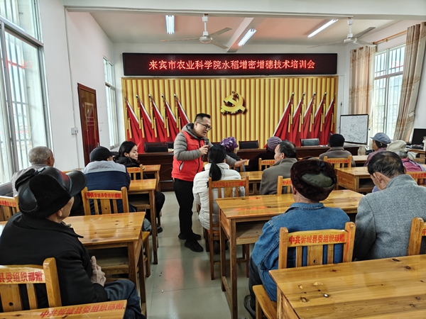 开办田间“大课堂”。组织专家团成员深入忻城、象州、武宣、兴宾区等生产一线开展技术指导,在田间地头开办农业实用技术培训班,通过“理论授课+田间实操”,手把手传授种植技能,提升农业技术人员和农民的科技意识和发展能力,以“科技动能”持续推动农业稳产保供。目前,累计开展各类培训会12场,培训农民610余人次,覆盖人群6100余人,发放宣传资料1000余份。