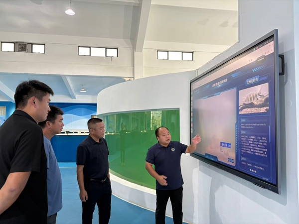 在保育中心珍稀鱼类繁育救护车间,车间负责人向李家文一行展示介绍了鱼类智能识别系统的应用,极大提升了鱼类水下观察识别的便利性,接着参观了保育中心团队收集保育的斑鳠、乌原鲤等多个珍稀鱼类品种,并交流了亲鱼培育、鱼苗繁殖相关技术。