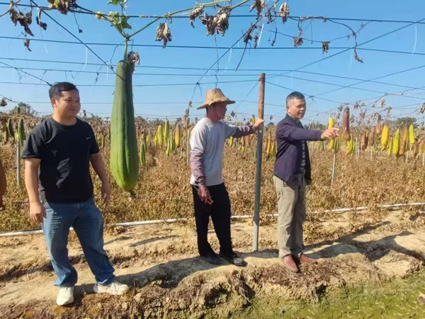 11月25日,贵港分院院长、高级农艺师岑延新带领技术团队一行5人,深入平南县大安镇古城村农业科技示范展示基地,针对丝瓜络种植生产难题开展专项技术指导,为农户排忧解难,助力丝瓜络产业健康发展。